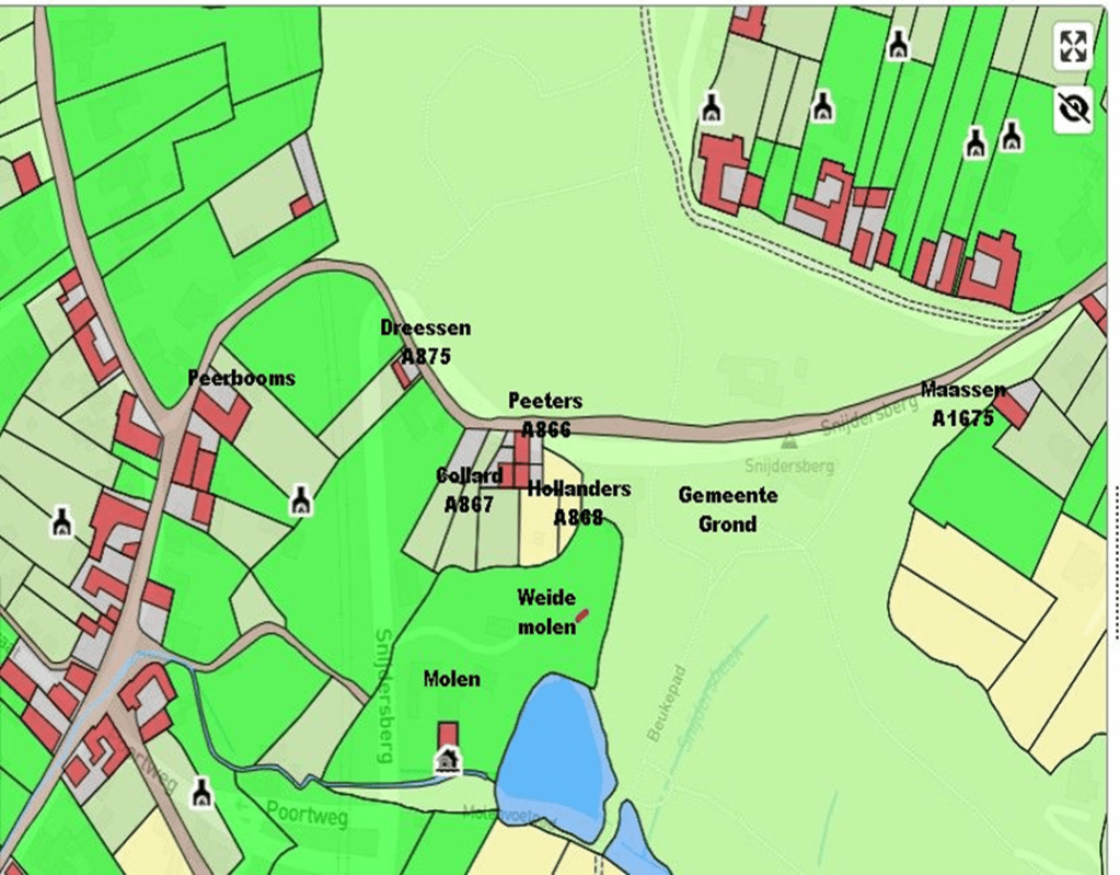 Kadasterkaart 1686 een unieke kaart . Dus ik heb een poging gewaagd en is een aanname waar het kruisje staat zou het kunnen geweest zijn, waar de familie Lemmens destijds heeft gewoond. Opvallend is het huis waar nu de ijsboerderij ligt (2023) het dak blauw is dat houd in dat dit dak van lei steen is gemaakt in die tijd een kostbaar gebeuren in Maastricht kwam dat vaker voor.