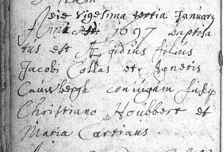 Geboorteakte van Gilles Collas uit 1697.
