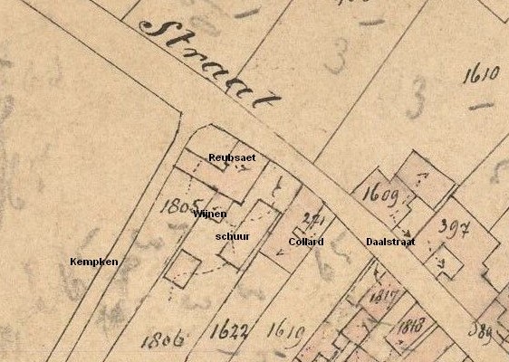 Kadasterkaart uit 1880 dit is in de daalstraat ik heb de namen er bij gezet die wat in deze tijd er woonde. Maar dit waren al weer kinderen van Reubsaet en Wijnen van voorheen.