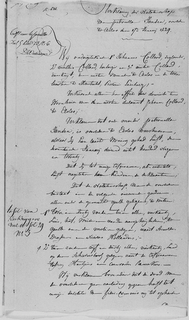 De erfenis van de ouders van Petronella Janssen.
