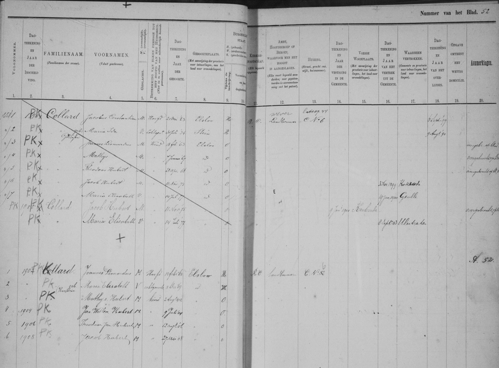 Bevolkingsregister vanaf 1890 om papier te besparen schreven ze er de volgende bewoner er onder. En dat is Sjengske Collard en er staat een kind nog niet op dat is Lies Collard geboren 1