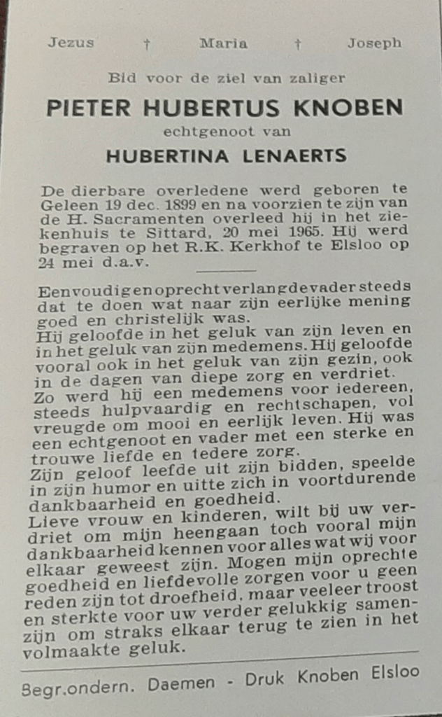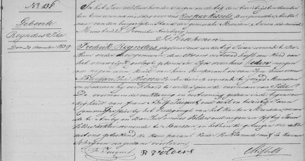 Geboorteplaats: Elsloo, kanton Meerssen, departement van La Meuse-Inférieure