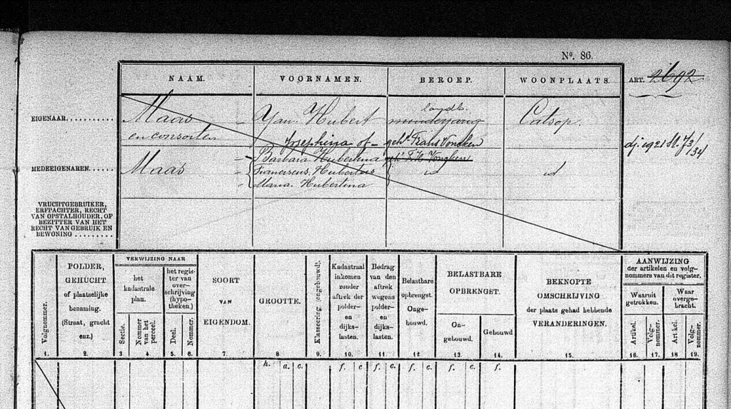 Wat betreft de familierelaties op de registratie is het cruciaal om nauwkeurig de vermelde namen te noteren. Het lijkt erop dat er een fout is gemaakt bij het vermelden van de kinderen van Lucie Penders; deze kinderen zouden als Pijpers geregistreerd moeten zijn in plaats van Penders. Dergelijke fouten komen vaak voor in historische documenten, en het corrigeren ervan is essentieel voor het samenstellen van een nauwkeurige stamboom en eigendomsregistratie. Het is raadzaam om meerdere bronnen te raadplegen om deze gegevens te verifiëren en een zo volledig mogelijk beeld te krijgen van de familiegeschiedenis en eigendomsverdelingen.