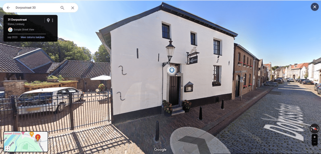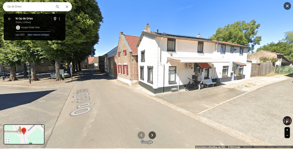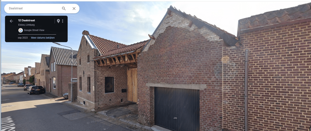 En dan zitten we in het heden 2023 hier rechts is de woning van Laurens Penders. Als men de linker woning weg denkt (Witte) deze is van 1880 en de rode poort weg denkt was er een erf waar verschillende woningen lagen deze ga uiteraard in mijn volgende delen meer op in.
