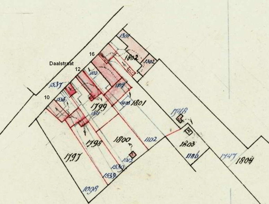 De hulpkaart uit 1862 toont dat perceel B345 is veranderd naar B1374, wat aangeeft dat er door de jaren heen veel is veranderd. De tuin en schuur van Lauren bevinden zich echter nog steeds op perceel B340, wat in 2024 ongewijzigd is gebleven.