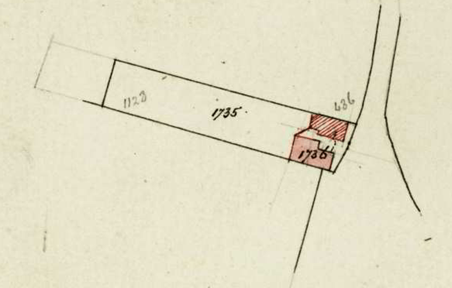 Het eerste gedeelte toont de woning. De boom is inmiddels verdwenen en er is veel verbouwd, maar het perceel is onveranderd gebleven. Als u verder naar rechts kijkt, ziet u een schuur die er vroeger ook al stond, evenals de tuin die destijds bij de voorste woning hoorde.