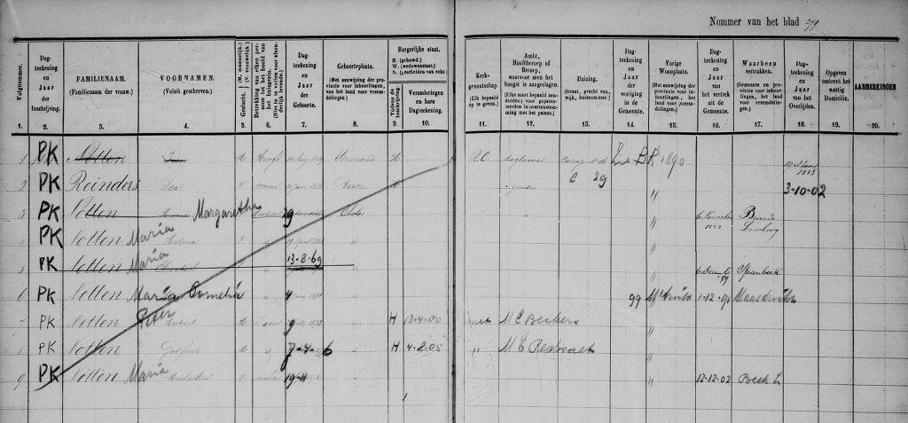 Catharina, die nog steeds als mede-eigenaar van het pand op den Dries geregistreerd stond, is een ander belangrijk detail. Het pand werd uiteindelijk in 1930 verkocht, wat een significante verandering voor de familie betekende. De verkoop van een familiebezit kan vaak een emotioneel beladen gebeurtenis zijn en markeert vaak het einde van een tijdperk. Het bevolkingsregister geeft ons een waardevol kijkje in de levens van vorige generaties en helpt ons de geschiedenis en dynamiek van families beter te begrijpen.