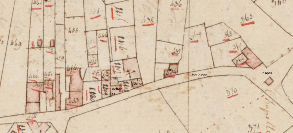 En dan moet men denken aan de rechterkant daar woonde de gebroeders Penders in de Franse tijd direct aan het begin maar deze kaart is van 1820 dus vanaf de deling van de buren veertig jaar verder en dat is een hele tijd en kan er veel veranderd zijn maar toch zult u zien straks dat er nog steeds nazaten woonde.