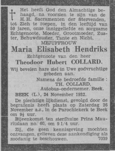Mijn vader Gerrit is als pleegkind groot gebracht bij Beth Reubsaet-Beckers (dat is de moeder van Hoebair en Lies etc) op de dries en trouwde met Betsie Wagemans